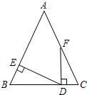 如图,△ABC中,∠B=∠C,FD⊥BC,DE⊥AB,垂足分别为D、E,∠AFD=158°.求:(1)∠C的度数;(2)∠EDF的度数。