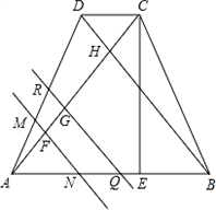 2,对角线AC、BD交于H,平行于线段BD的两条直线MN、RQ同时从点A出发沿AC方向向点C匀速平移,分别交等腰梯形ABCD的边于M、N和R、Q,分别交对角线AC于F、G;当直线RQ到达点C时,两直线同时停止移动.记等腰梯形ABCD被直线MN扫过的图形面积为S