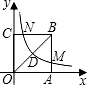 如图,已知反比例函数y=的图象恰好经过正方形OABC的对角线OB的中点D,分别与AB、BC交于点M、N,若AM=1,BN=3,则反比例函数的解析式为