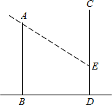 如图,甲楼AB高18m,乙楼CD坐落在甲楼的正东面,已知当地冬至中午12时,物高与影长的比是1:,已知两楼相距20m,那么甲楼的影子落在乙楼上有多高?