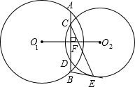 已知:如图,⊙O1与⊙O2相交,⊙O1的弦AB交⊙O2于点C、D,O1O2⊥AB,垂足为F,过B作⊙O2的切线BE,切点为E,连接EC、DE,若BE=DE,∠BED=30°,AC、CE的长是方程x2-10x+16=0的两个根(AC<CE).