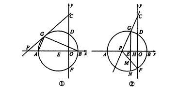 已知抛物线y=-x2-2kx+3k2(k>0)交x轴于A、B两点,交y轴于点C,以AB为直径的⊙E交y轴于点D、F (如图1),且DF=4,G是劣弧上的动点(不与点A、D 重合),直线CG交x轴于点P。