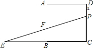 精英家教网如图,正方形ABCD的边长为10cm,点E在边CB的延长线上,且EB=10cm,点P在边DC上运动,EP与AB的交点为F.设DP=xcm,△EFB与四边形AFPD的面积和为ycm2,那么,y与x之间的函数关系式是
