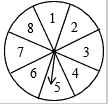 今年“五·一”长假期间,“国粹超市”开展有奖促销活动,凡在超市购物的顾客均有一次转动圆盘的机会(如图),如果规定当圆盘停下来时,指针指向8就中一等奖,指向2或5就中二等奖,指向其余数字不中奖。