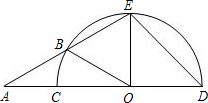 如图,CD是半圆O的直径,A是半圆上一点,AE垂直平分CO,过点A作圆O的切线交DC延长线于点B,已知CD=8cm,则切线AB的长是