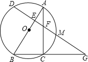 精英家教网如图,AB是△ABC的外接圆⊙O的直径,D是⊙O上的一点,DE⊥AB于点E,且DE的延长线分别交AC、⊙O、BC的延长线于F、M、G.