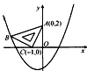 在平面直角坐标系中,现将一块等腰直角三角板ABC放在第一象限,斜靠在两坐标轴上,且点A(0,2),点C(1,0),如图所示;抛物线经过点B。