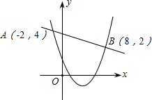 如图,已知二次函数y1=ax2+bx+c与一次函数y2=kx+m的图象相交于A(-2,4)、B(8,2)两点,则能使关于x的不等式 ax2+(b-k)x+c-m>0 成立的x的取值范围是______.