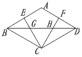 已知:如图,菱形ABCD中,∠A=120°,过C分别作AB、AD的垂线,垂足分别为E、F,与对角线BD相交于G、H。