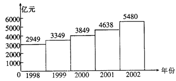 “国运兴衰,系于教育”图中给出了我国从1998─2002年每年教育经费投入的情况.