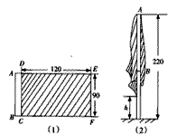 图①是一面矩形彩旗完全展平时的尺寸图(单位:cm).其中矩形ABCD是由双层白布缝制的穿旗杆用的旗裤,阴影部分DCEF为矩形绸缎旗面.