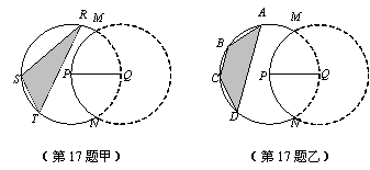如图,实线部分的月牙形公园是由圆P上的一段优弧和圆Q上的一段劣弧围成,圆P和圆Q的