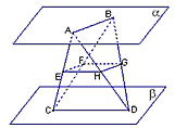 如图:已知平面//平面,点A、B在平面内,点C、D在平面内,直线AB与CD是异面直线,点E、F、G、H分别是线段AC、BC、BD、AD的中点。