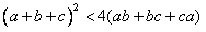 设a,b,c为△ABC的三条边,求证:a2+b2+c2<2ab+2bc+2ac.