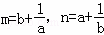 已知a>0,b>0,a、b的等比中项是1,且,则m+n的最小值是(  )