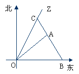如图示,一科学考察船从港口O出发,沿北偏东α角的射线OZ方向航行,其中tg