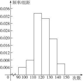 (2)  若次数在110以上(含110次)为达标,试估计该学校全体高一学生的达标率是多少?