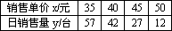 某商场经营一批进价是30元/台的小商品,在市场试验中发现,此商品的销售单价x元与销售量y台之间有如下关系: