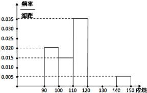 某校高三数学竞赛初赛考试后,对考生成绩进行统计(考生成绩均不低于90分,满分150分),将成绩按如下方式分成六组,第一组[90,100)、第二组[100,110)…第六组[140,150].如图为其频率分布直方图的一部分,若第四、五、六组的人数依次成等差数列,且第六组有4人.