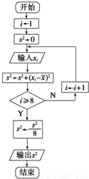 一组数据xi(1≤i≤8)从小到大的茎叶图为:4|0 1 3 3 4  6 7 8,在如图所示的流程图中是这8个数据的平均数,则输出的s2的值为