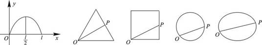 点P从点O出发, 按逆时针方向沿周长为l的图形运动一周, O、P两点连线的距离y与点P走过的路程x的函数关系如图, 那么点P所走的图形是 ( )