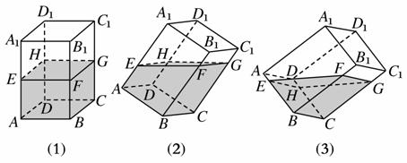 如图,在透明塑料制成的长方体ABCD-A1B1C1D1容器中灌进一些水,将容器底面一边BC置于地面上,再将容器倾斜,随着倾斜程度的不同,以下命题:①水的形状成棱柱形;②水面EFGH的面积不变;③水的EFGH始终为矩形.其中正确的命题序号是________.