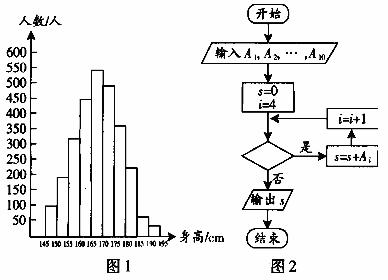 图1是某县参加2011年高考的学生身高条形统计图,从左到右的各条形图表示学生人数依次记为A1、A2、…A10(如A2表示身高(单位:cm)在[150,155