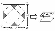 请你设计一个包装盒,如图所示,ABCD是边长为60cm的正方形硬纸片,切去阴影部分所示的四个全等的等腰直角三角形,再沿虚线折起,使得ABCD四个点重合于图中的点P,正好形成一个正四棱柱形状的包装盒,E、F在AB上是被切去的等腰直角三角形斜边的两个端点,设AE=FB=xcm.