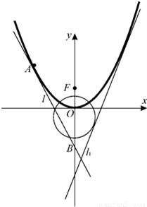 (2)设A是C1上的一动点,以A为切点的C1的切线l交y轴于点B,设