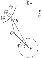 方向300 km的海面P处(如图),并以20 km/h的速率向西偏北45°方向移动,台风侵袭的范围为圆形区域,当前半径为60 km,并以10 km/h的速率不断增大,问几小时后该城市开始受到台风的侵袭?