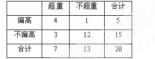 某研究小组为了研究中学生的身体发育情况,在某学校随机抽出20名15至16周岁的男生,将他们的身高和体重制成2×2列联表,根据列联表的数据,可以有_____%的把握认为该学校15至16周岁的男生的身高和体重之间有关系.![]()