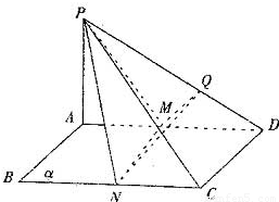 如图,边长为2的正方形ABCD所在平面为α,PA⊥平面α,PA=2,M、N分别是AD、BC的中点,MQ⊥PD于Q.