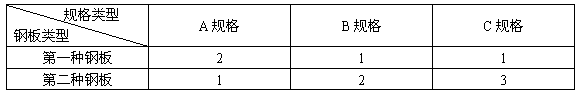 要将两种大小不同的钢板截成A、B、C三种规格,每张钢板可同时截得三种规格的小钢板块数如下表: