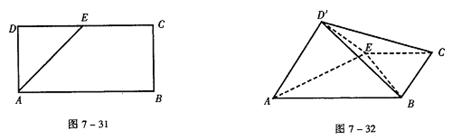 20.(12分)如图7-31,已知矩形ABCD,AB=2AD=2a,E是CD边的中点,以AE为棱,将△DAE向上折起,将D变到D′的位置,使面D′AE与面ABCE成直二面角(图7-32)。