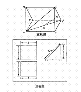 一个多面体的直观图及三视图如图所示(其中M、N、Q分别是AF、BC、FC的中点).