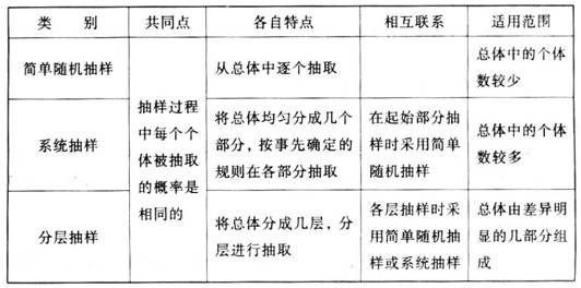 (2)分层抽样学完后,课本中列表说明三种抽样方法的区别与联系。对这张表,我们必须明确以下几个方面: