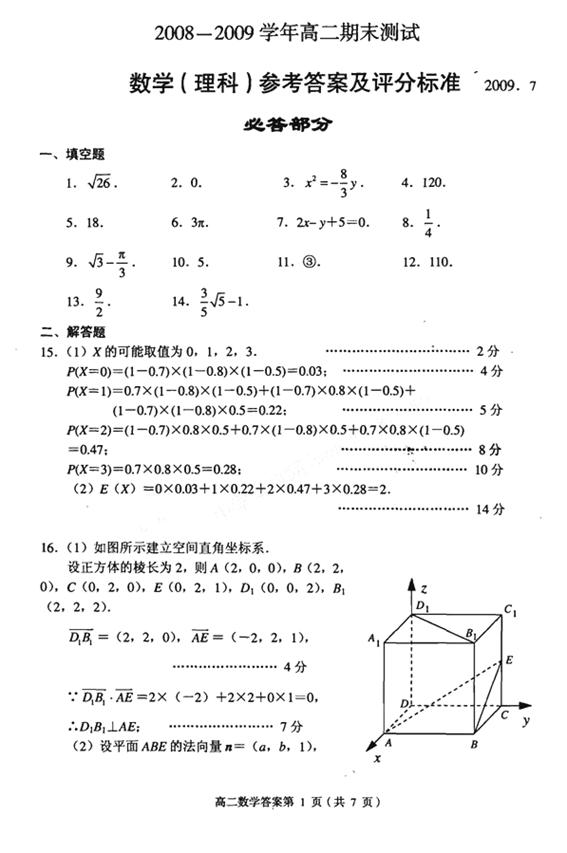 2008--2009学年高二期末测试