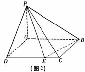 ,PB = 3,A为PB边上一点,且PA = 1,将△PAD沿AD折起,使面PAD⊥面ABCD(如图2),E是CD上一点,
