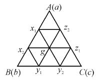 ≥2,n∈N)个全等的小正三角形(图2,图3分别给出了n=2,3的情形),在每个三角形的顶点各放置一个数,使位于⊿ABC的三边及平行于某边的任一直线上的数(当数的个数不少于3时)都分别依次成等差数列,若顶点A ,B ,C处的三个数互不相同且和为1,记所有顶点上的数之和为f(n),则有f(2)=2,f(3)= ,…,