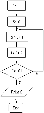 (3) 第二个处理框中改为 S←1,判断框条件改为I<101 …………15分