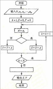 ,其中收入记为正数,支出记为负数。该店用下边的程序框图计算月总收入S和月净盈利V,那么在图中空白的判断框和处理框中,应分别填入下列四个选项中的 ( )