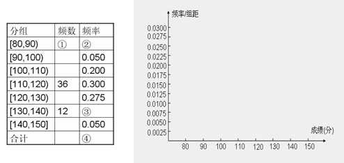 ⑵在所给的坐标系中画出区间[80,150]上的频率分布直方图;