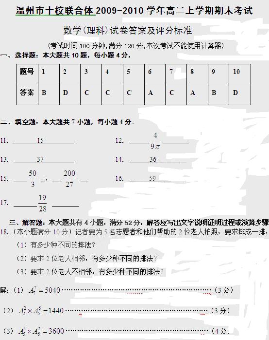 18.(本小题满分10分)记者要为5名志愿者和他们帮助的2位老人拍照,要求排成一排