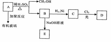 (13分)有机玻璃是一种重要的塑料,有机玻璃的单体A(C5H8O2)不溶于水,并可以发生以下变化: