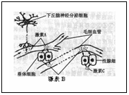 Ⅰ.(10分)动物体内某些激素的合成和分泌可随季节不同而改变,且有一系列机制维持激素在血液中含量的相对稳定。下图表示下丘脑神经分泌细胞、垂体细胞、性腺细胞及它们分泌的激素之间的关系。据图回答有关问题: