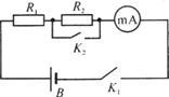 (3)利用图所示的电路测量电流表mA的内阻RA.图中R1、R2为电阻,K1、K2为电键,B是电源(内阻可忽略).