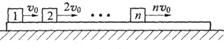 如图所示,一块足够长的木板,放在光滑水平面上,在木板上自左向右放有序号是1、2、3、…、n的木块,所有木块的质量均为m,与木板间的动摩擦因数都为μ,木板的质量与所有木块的质量总和相等。在t=O时刻木板静止,第1、2、3、…、n号木块的初速度分别为v0、2v0、3v0、…、nv0,方向都向右。最终所有木块与木板以共同速度匀速运动。试求: