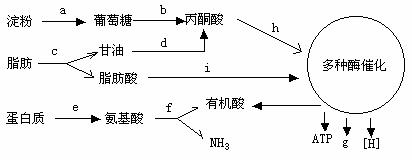 24、(12分)下图为人体内能源物质代谢的部分过程图解。请据图回答: