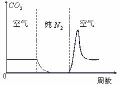 土豆在纯空气中贮藏了一周,然后在氮气中贮藏了一周,最后又置于纯空气中贮藏。在实验室中测定了释放的