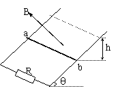 22、两根光滑的金属导轨,平行放置在倾角为θ的斜面上,导轨的左端接有电阻R,导轨自身的电阻忽略不计,斜面处在一匀强磁场中,磁场方向垂直斜面斜向上。质量为m、电阻可不计的金属棒ab,在沿斜面与棒垂直的恒力F作用下沿导轨加速上滑,上升高度h ,如图所示。则在这一过程中( )